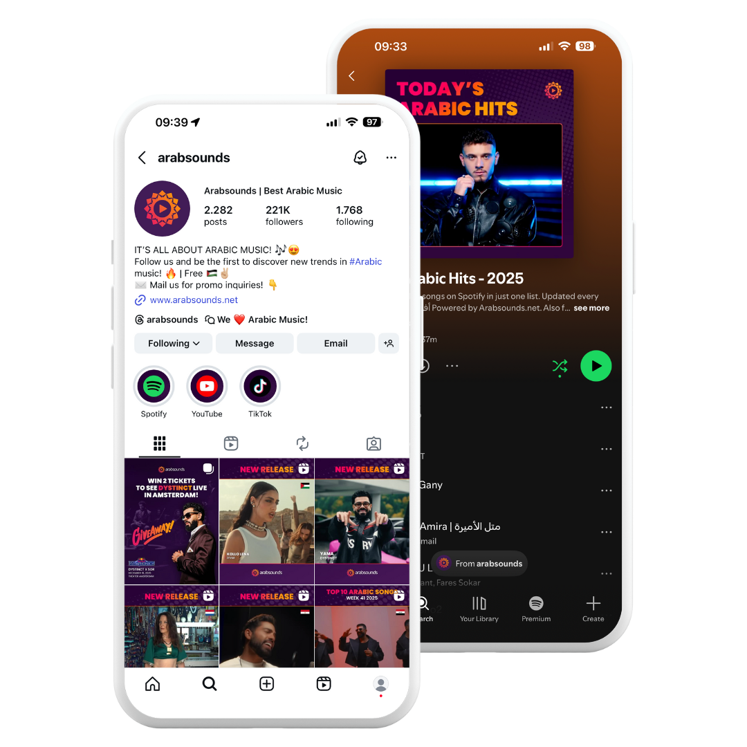 - YouTube: Shorts, placement in playlists like Top Arabic Songs 2025, community posts or get mentioned in our weekly YouTube videos.